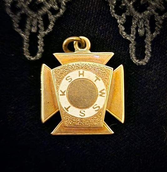 Vintage 14K Enamel 2-Sided Masonic Knights Templar Pendant