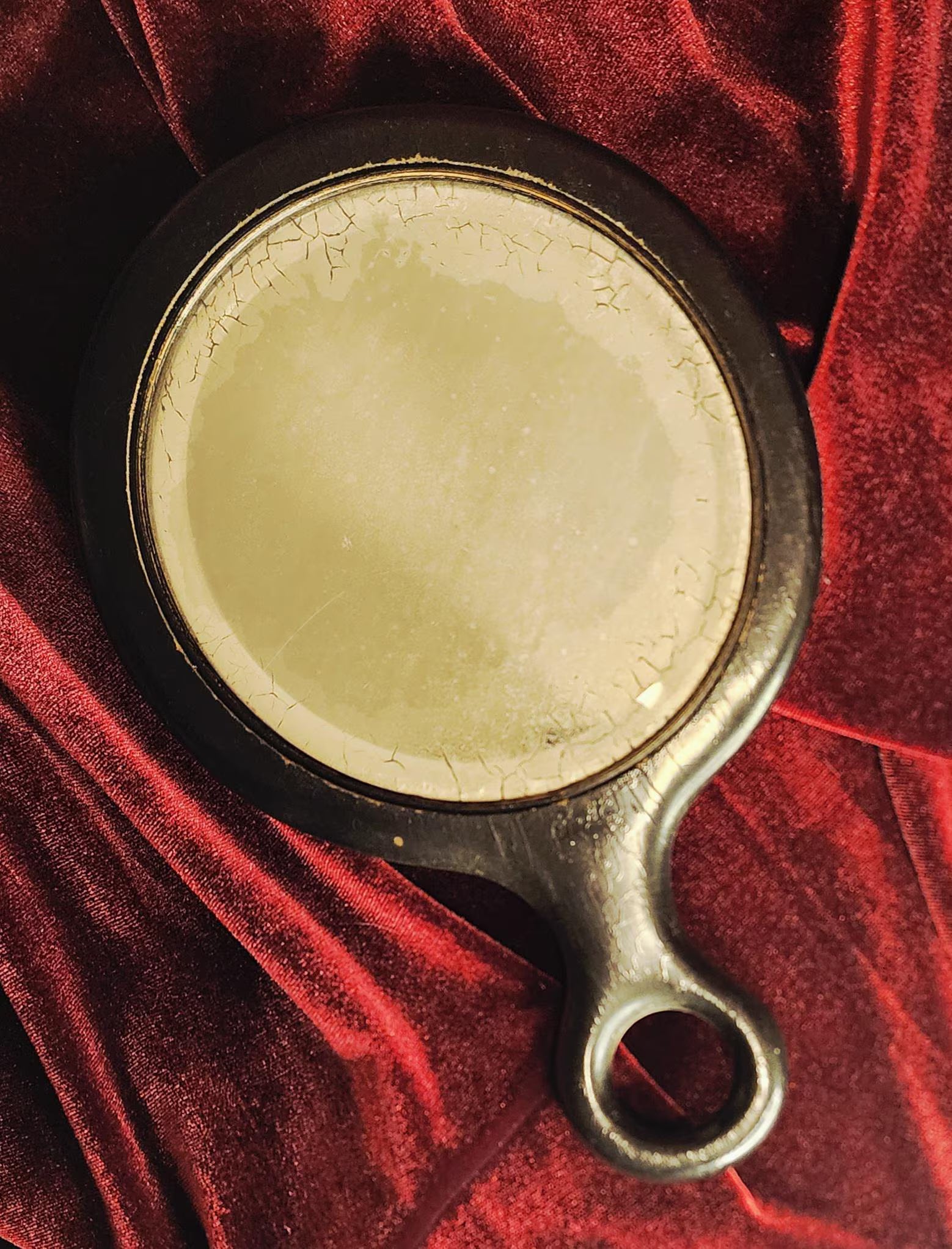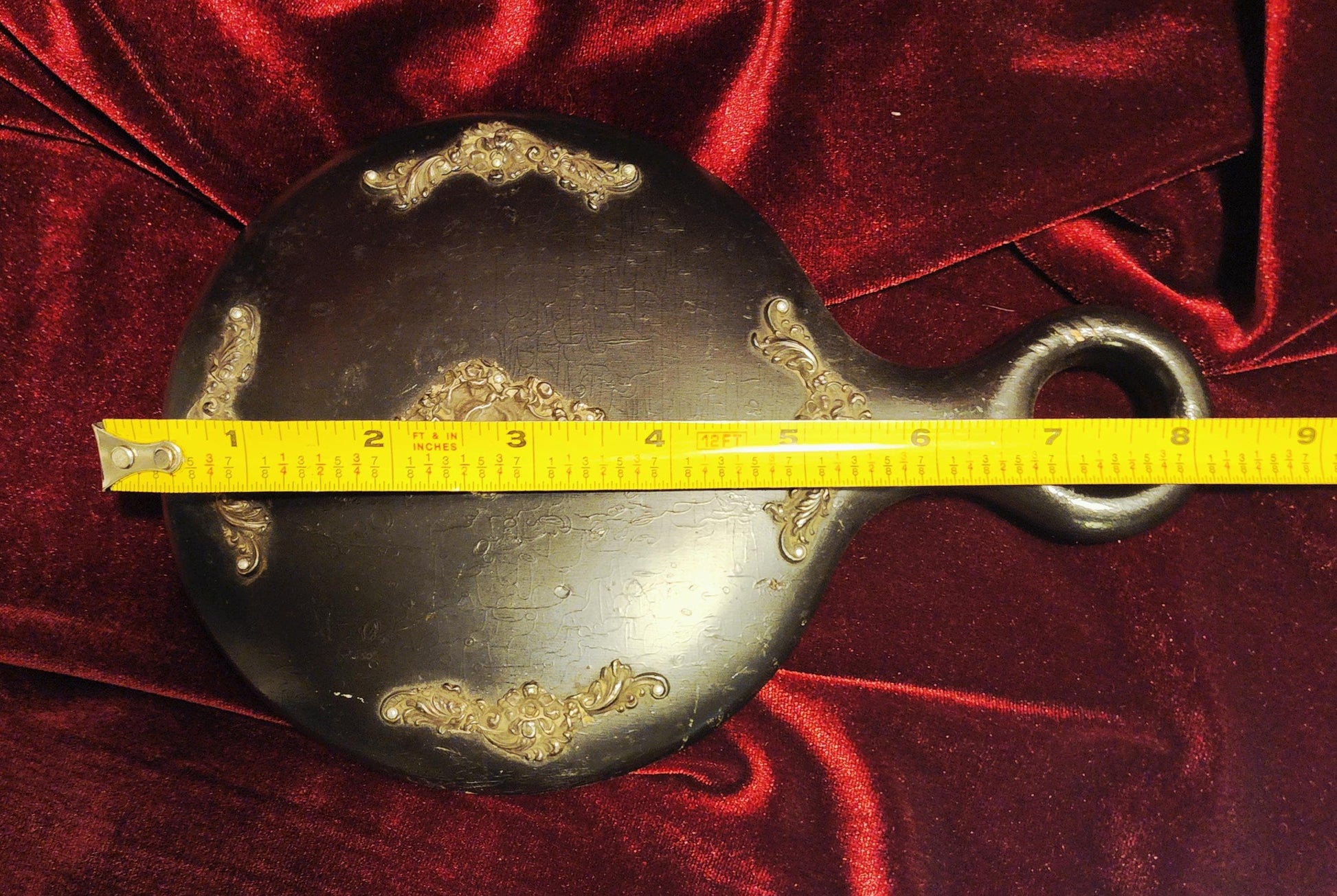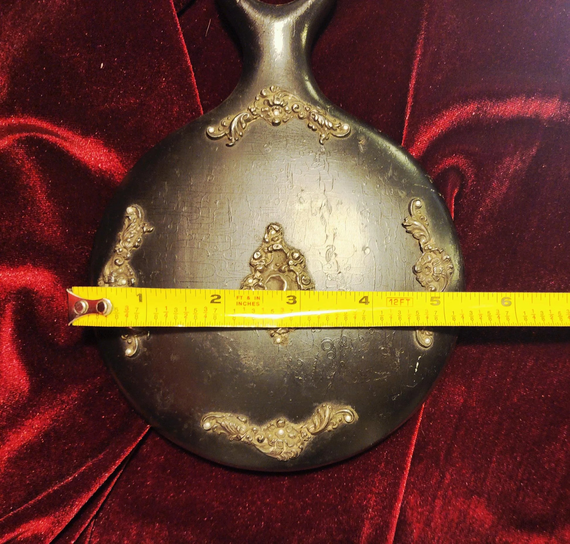 Antique Black Wooden Hand Mirror