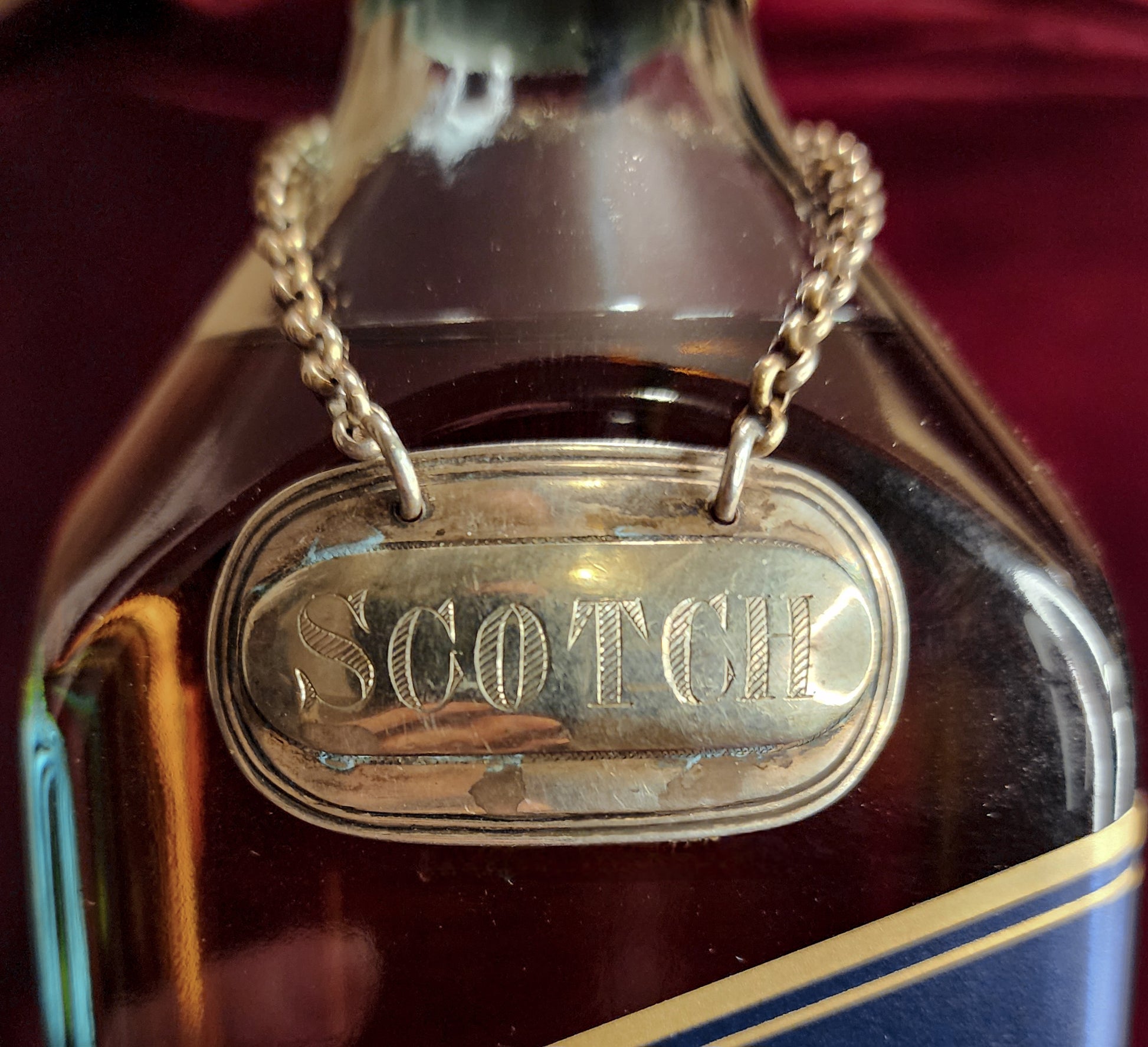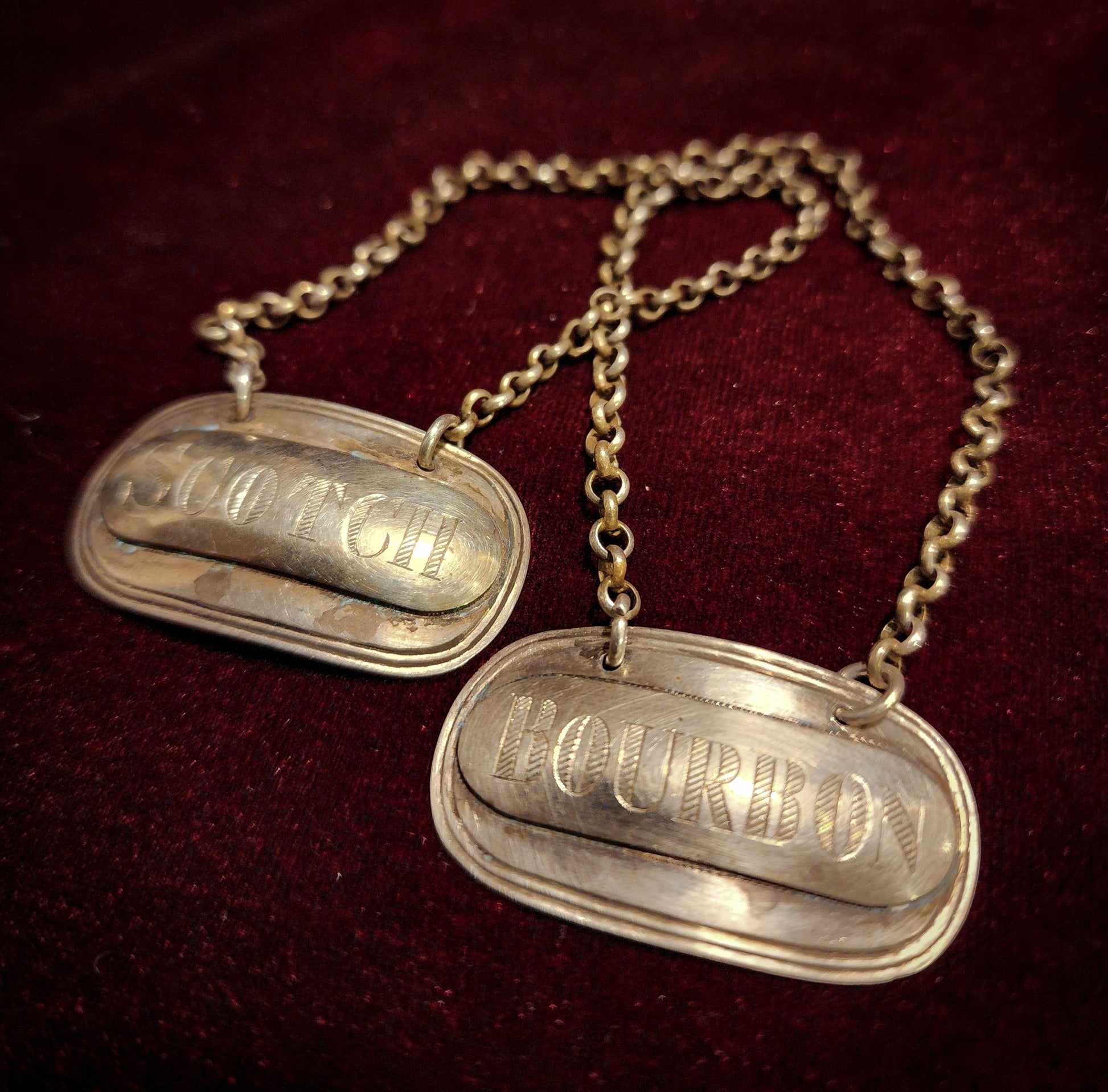 Rare set of sterling silver decanter labels! Often replicated but these are the real deal! One decanter label for your bourbon and one for your scotch. The stampings suggest that these labels are from England and date back to the 1800's.