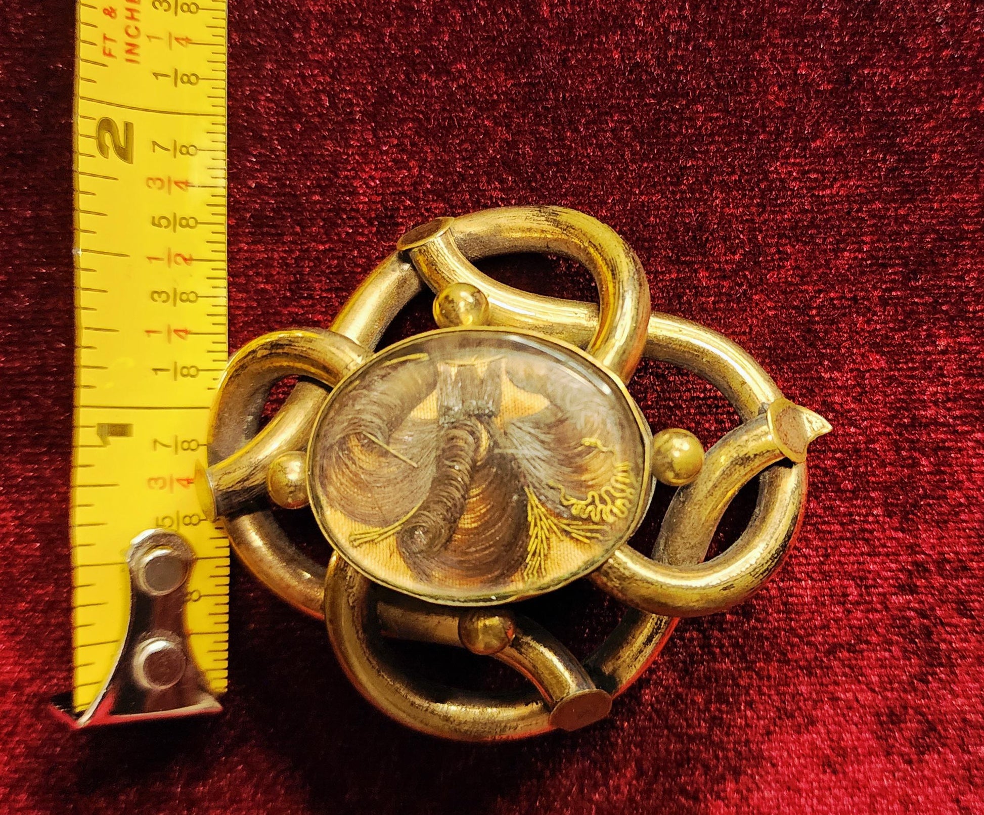 Antique Victorian Mourning Brooch. The use of hair weaving in mourning jewelry dates back to the 17th century and reached its peak in popularity during the Victorian era (1837-1901). The curl in the hair of this particular piece is known as, "Prince of Whales". This is because Queen Victoria herself popularized mourning jewelry after the death of her husband Prince Albert in 1861.